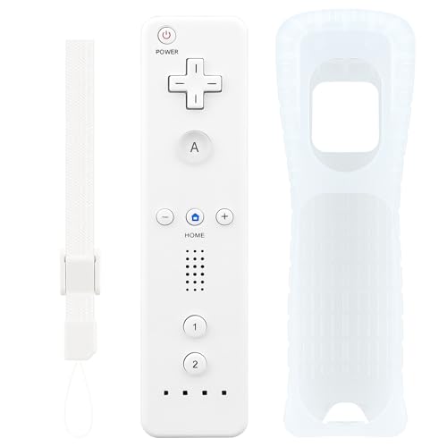 TIANHOO Wii Controller 2 Pack with Silicone Case and Wrist Strap, Wii Remote Controller with Upgraded Functions of Pointer, Speaker and Shock Vibration, Remote Controller for Wii/Wii U - White