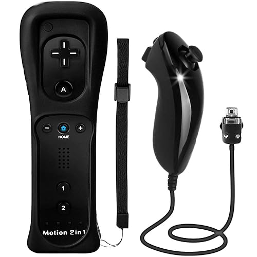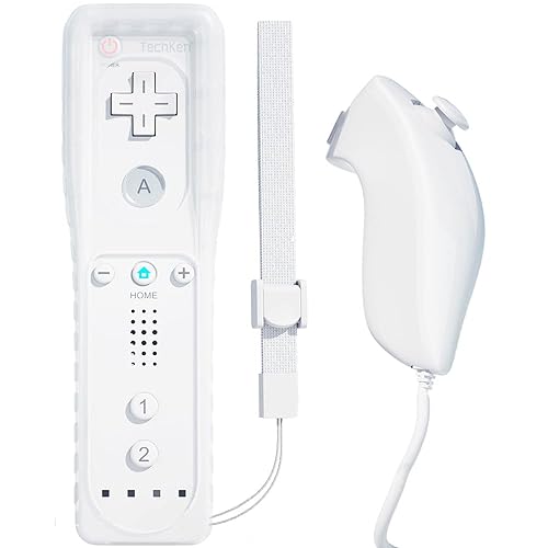 TechKen 2-i-1 Wii fjärrkontroll Motion Plus Wii Remote Game Controller och Nunchuk Controller för Wii och Wii U med silikonfodral och handledsrem