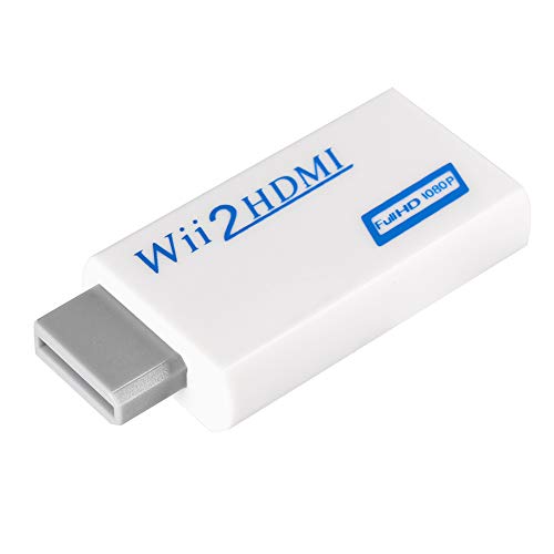 GoldOars Wii till HDMI-adapter med 1,5 m kabel, omvandlare för retrospel, 1080/720 uppslukande visuell, 3,5 mm ljudutgång, Plug and Play, passar för modern TV (vit)