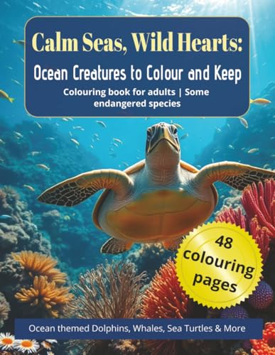 Calm Seas, Wild Hearts: Ocean Creatures to Colour and Keep: Colouring book for adults | Some endangered species | 48 colouring pages | For Adults | Ocean themed | Dolphins, Whales, Sea Turtles & More