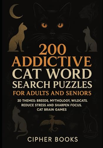 200 Addictive Cat Word Search Puzzles For Adults And Seniors: 20 Themes: Breeds, Mythology, Wildcats. Reduce Stress And Sharpen Focus. Cat Brain Games.