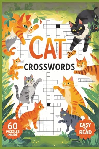Cat Crosswords: Crossword Puzzles with Easy to Read Print about Cats, Wildcats and Famous Felines | 6x9 inches, 120 pages, 60 Puzzles,... Gift for Vacations, Holidays and Free Times