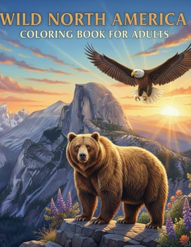 WILD NORTH AMERICA: Coloring Book for Adults | Majestic North American Wildlife and National Park Scenery | Realistic Grizzly Bears, Eagles, and Mountain Landscapes for Stress Relief