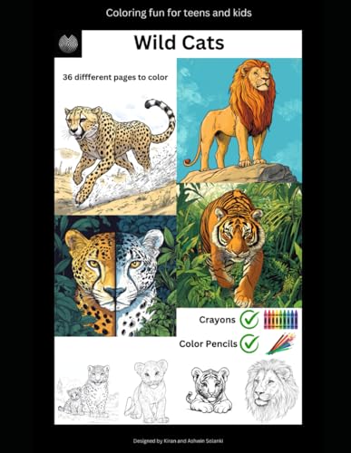 Wild Cats: Coloring Fun for Teens and Kids, boost screen-free creativity with this coloring book: Take it to the zoo or a wildlife park. Help your ... of the amazing wild cats they see up close.