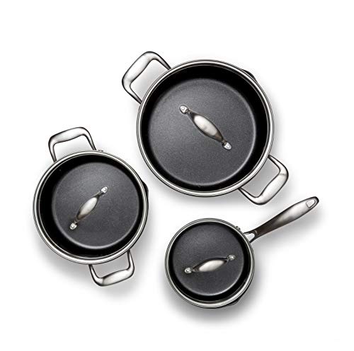 Wilfa EGO Produre Pro 3-delat kastrullset - för alla spisar, 1,5L / 3,5L / 5L, keramisk non-stick-beläggning, silver