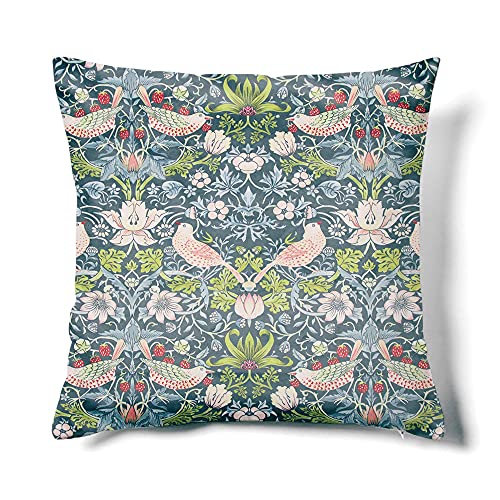 Obal William Morris kuddfodral originaldesign sammet kuddfodral fyrkantigt dekorativt kuddöverdrag 45 cm x 45 cm för soffa säng bäddsoffa vardagsrum sovrum (18 x 18 tum) grön blågrön jordgubbtjuv