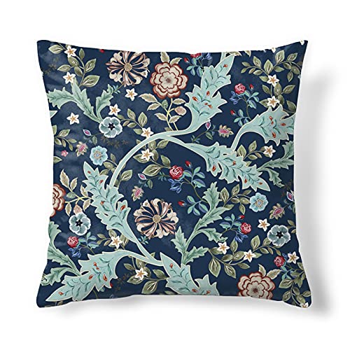 Obal William Morris Blå Kuddfodral Originaldesign Sammet Kuddfodral Fyrkant Dekorativt Kuddfodral 45 cm x 45 cm för Soffa Säng Soffa Vardagsrum Sovrum (18 x 18 tum) Wilhelmina