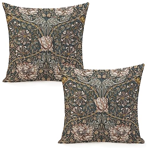 Hostecco William Morris-kuddfodral, kaprifol, rosor, krans, blommiga mönster, fyrkantiga dekorativa kuddöverdrag för soffa, schäslong, 45 x 45 cm, 4-pack