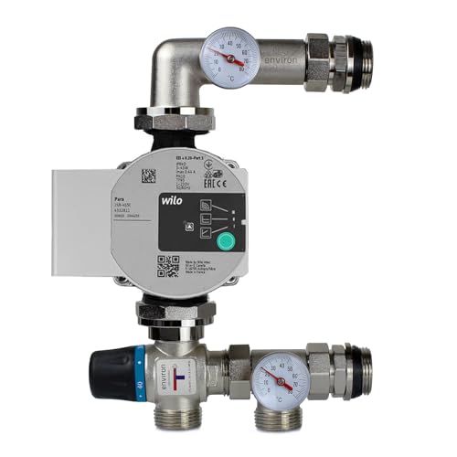 ENVIRON – fast värdesregleringsset 20–55 °C med högeffektiv pump | lämplig för golvvärme pumpgrupp | Mässing: CW 617N O – nickelpläterad (Wilo Para 25/6)
