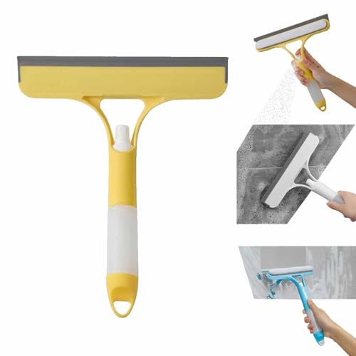 3 In 1 Window Cleaning Scraper,Spray Windowsqueegee Cleaner Tool With Spraybottle,Multi-Purpose Wiper For Glass Doors For Windows Glass,Mirrors,Car Windshields,Bathrooms (Yellow)