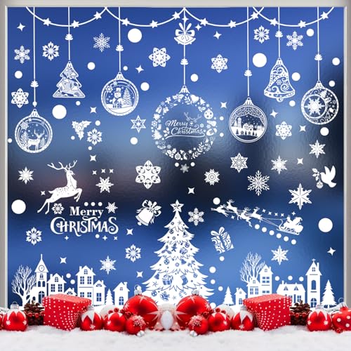 SCIONE Julfönsterklistermärken, 243 st, 9 ark, julfönsterdekorationer, festtillbehör, återanvändbara, dubbelsidiga, statiska julfönsterdekaler för hemmet