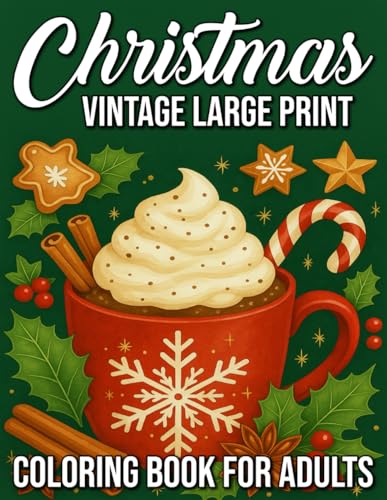 Vintage Large Print Christmas Coloring Book for Adults: Nostalgic Holiday Scenes, Cozy Farmhouse Designs, and Classic Winter Illustrations for Stress Relief