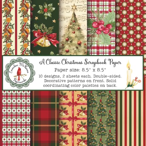 A Classic Christmas Scrapbook Paper: Winter Cozy Holidays Craft Pad, Traditional Red and Green Patterns, Double Sided for Papercrafts (Junk Journals, ... Cardmaking, Kids Crafts, Gift Decorating)