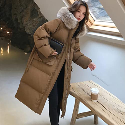 Winter Womens Down Puffer Long Jackets Baggy Tjockning Varm Hooded Imitation Fox Hårkrage Mode Bomull Padded Parkas Coats-Brown,S