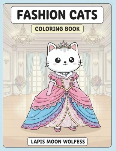 Fashion Cats Coloring Book: 40 Adorable Cats in Elegant Outfits – Winter Coats, Ball Gowns, Beachwear, Tuxedos, Suits – Simple Thick Lines for Kids and Adults