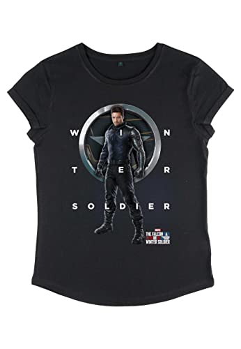 Marvel Kvinnors Falcon och Winter Soldier-Wielding The Shield Rolled Sleeve T-shirt, svart, S, svart, S