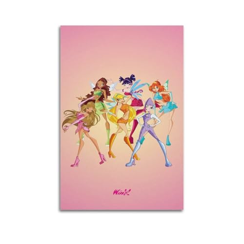Winx Club Anime Print Poster Affisch, canvastryck vardagsrum, hem, estetisk konst, hängande målning, ny hem, gåva, modern rumsdekoration, 50 x 75 cm (20 x 30 tum)
