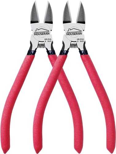 HOUSERAN 6 inch Trådskärare & Sidavbitare 2 Pack - Diagonal Avbitartång med Halkfritt Rött Handtag, Fjäderbelastad Wire Cutter för Smyckestillverkning, Hantverk och Dragkedjor