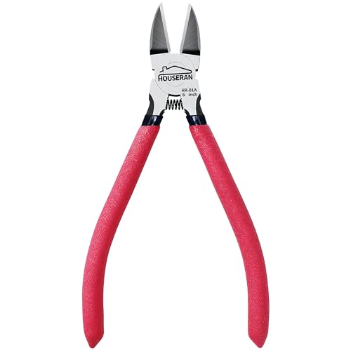 HOUSERAN 16.5 cm Trådskärare & Sidavbitare - Diagonal Avbitartång med Halkfritt Rött Handtag, Fjäderbelastad Wire Cutter för Smyckestillverkning, Hantverk och Dragkedjor