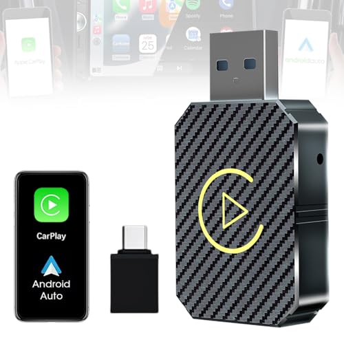SternSinn 2025 Wireless CarPlay-adapter, trådlös 2-i-1-konvertering Wired Android Auto/Carplay till trådlös, typ C/USB-kontakt & play, mini och stabilare för med iOS och bilar med Wired CarPlay