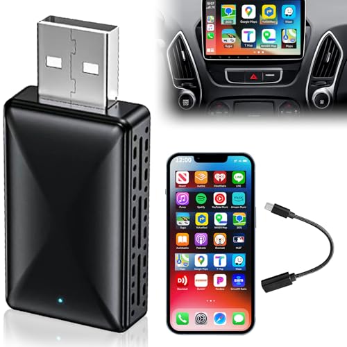 NEUTYPECHIC Trådlös Carplay-adapter, 2-i-1 trådlös konvertering Carplay trådbunden till trådlös Carplay, Plug and Play, med bil med 800+ Modèles de Voitures för IOS 10 och högre (svart)