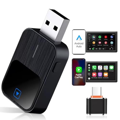 Gaethra Carplay Wireless Adapter, 2 w 1 bezprzewodowy Android Auto i Carplay Wireless Adapter, super szybka aktualizacja z przewodowego na bezprzewodowy, Type-C/USB, do samochodów z AA i Carplay