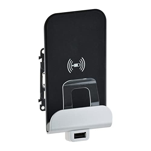 Legrand, Qi-Wireless Charger + USB-laddningsstation, induktiv laddare för installationsdosinstallation för iPhone 8, iPhone 8 PLUS, Samsung Galaxy S8 och alla Qi-standardsmartphones, 755114