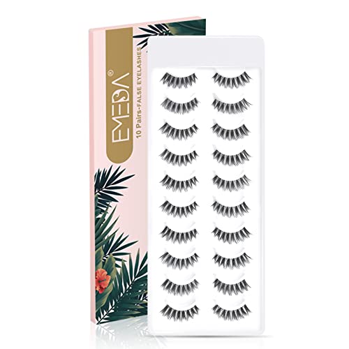 EMEDA naturliga falska ögonfransar Clear Band 10 par Falska ögonfransar med naturlig look Soft Wispy Fake Lashes Multipack Cateye Lashes Demi Wispies Falska fransar (DEMI)