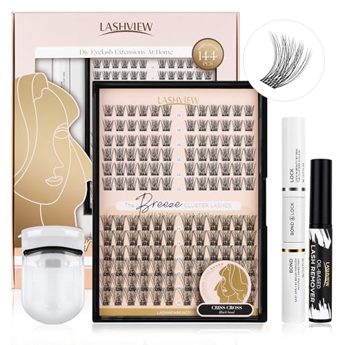 LASHVIEW Cluster Lashes Individual Lashes Mega Volume Superfine Brand and Soft DIY Eyelash Extension Natural Look Reusable Wispy Eyelash Clusters (Large-Volume D+ Kit)
