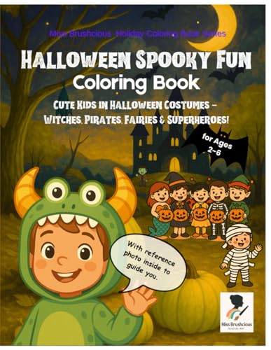 Miss Brushcious Holiday Coloring Book Series, Halloween Spooky Fun Coloring Book: Cute Kids in Halloween Costumes-Witches, Pirates, Fairies & ... | Great for Markers | with Reference Photo