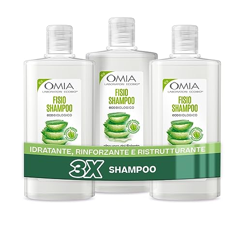 Omia, Fisio Eco Bio Shampoo with Salento Aloe Vera for Normal Hair, Moisturizing and Balancing, Shampoo for Frequent Washing, Without Silicones and SLES, 3 Bottles of 200 ml - Exclusively on Amazon