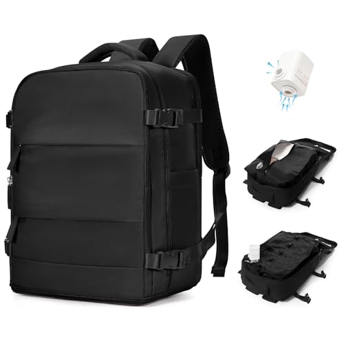 BJLFS Vakuum ryggsäck 40 × 30 × 20 handbagage ryggsäck 40 x 20 x 25 för Ryanair Wizzair reseryggsäck kvinnor vakuum handbagage flygplan Easyjet 45 × 36 × 20 vattentät ryggsäck män, A02-svart, Ryanair