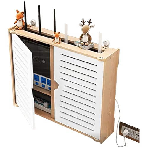 PPGE HOME Routerhylla, vit förvaringsbox för wifi, router, väggmonterad, kabelarrangör, hängande, WLAN, kabel, plugg, ställ – dubbla dörrar