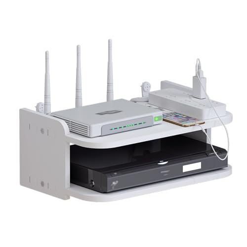 Orrdiffi WiFi router förvaringslåda hylla vägg WLAN router dubbelskikt TV-set top hylla för väggdekoration för sovrum, vardagsrum (vit, 30 cm