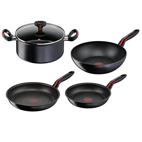 Tefal 9 st köksredskap, stekpanna 24 cm + wok 28 cm + grytor 22/24 cm + redskap, ingen induktion, non-stick-beläggning, ergonomiskt handtag, Super Cook B459S984