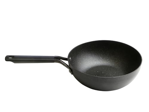 WECOOK! Phat-Wok smidd aluminiumwok 24 cm | 3 mm tjocklek | QuanTanium non-stick | 5 lager | full induktion | lämplig för induktion, keramik, gas och ugn | svart färg