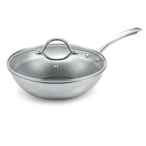 Tescoma 780569 Wok ø 28 cm non-stick rostfritt stål med glaslock, induktionshäll, PFOA-fri, SteelCRAFT-linje