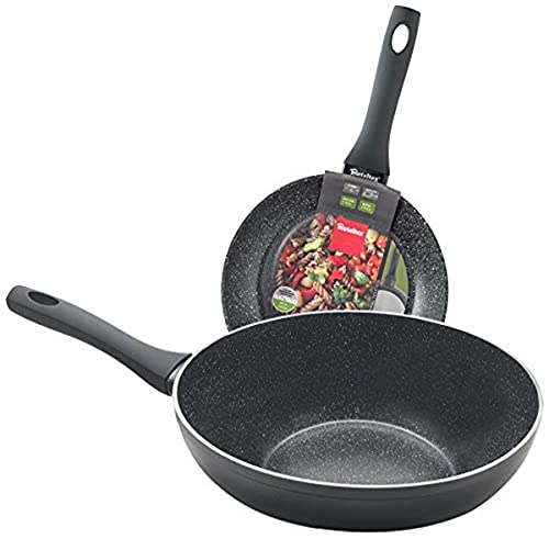 Metaltex NATIVA – sats panna (24 cm) + wok (28 cm) av smitt aluminium, non-stick beläggning Stone-Tex 2 lager, full induktion passar alla spis