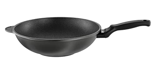 AMT Gastrogjuten wok 32 cm Ø, 10 cm hög, wokpanna, inte lämplig för induktion, fast handtag, Lotan® non-stick finish, gjutjärnspanna (aluminiumgjutning), AMZN-1032S