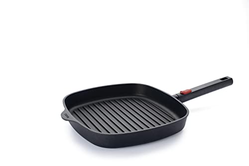 Ull Diamond Lite grillpanna, fyrkantig, med spår – induktiv, 24 x 24 cm, 4 cm hög, med avtagbart handtag – lämplig för alla typer av spisar, gjuten aluminium, non-stick-beläggning, ugnssäker