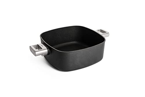 Woll Diamond Logic XR-gryta, fyrkantig med 2 sidohandtag – induktiv, 28 cm x 28 cm, 11 cm hög, med avtagbart handtag – lämplig för alla typer av spisar, aluminium, ugnssäker, svart