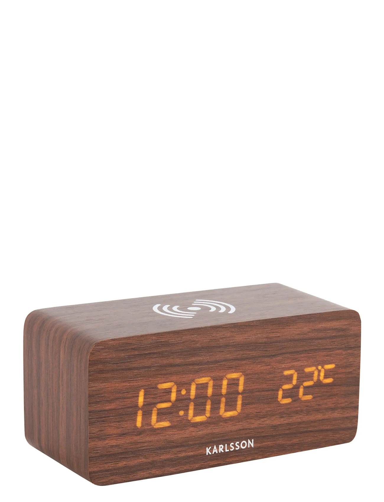 KARLSSON Alarm Clock Block W. Phone Charger Led Dark Wood Veneer, White Led - Brown - W7.1CM