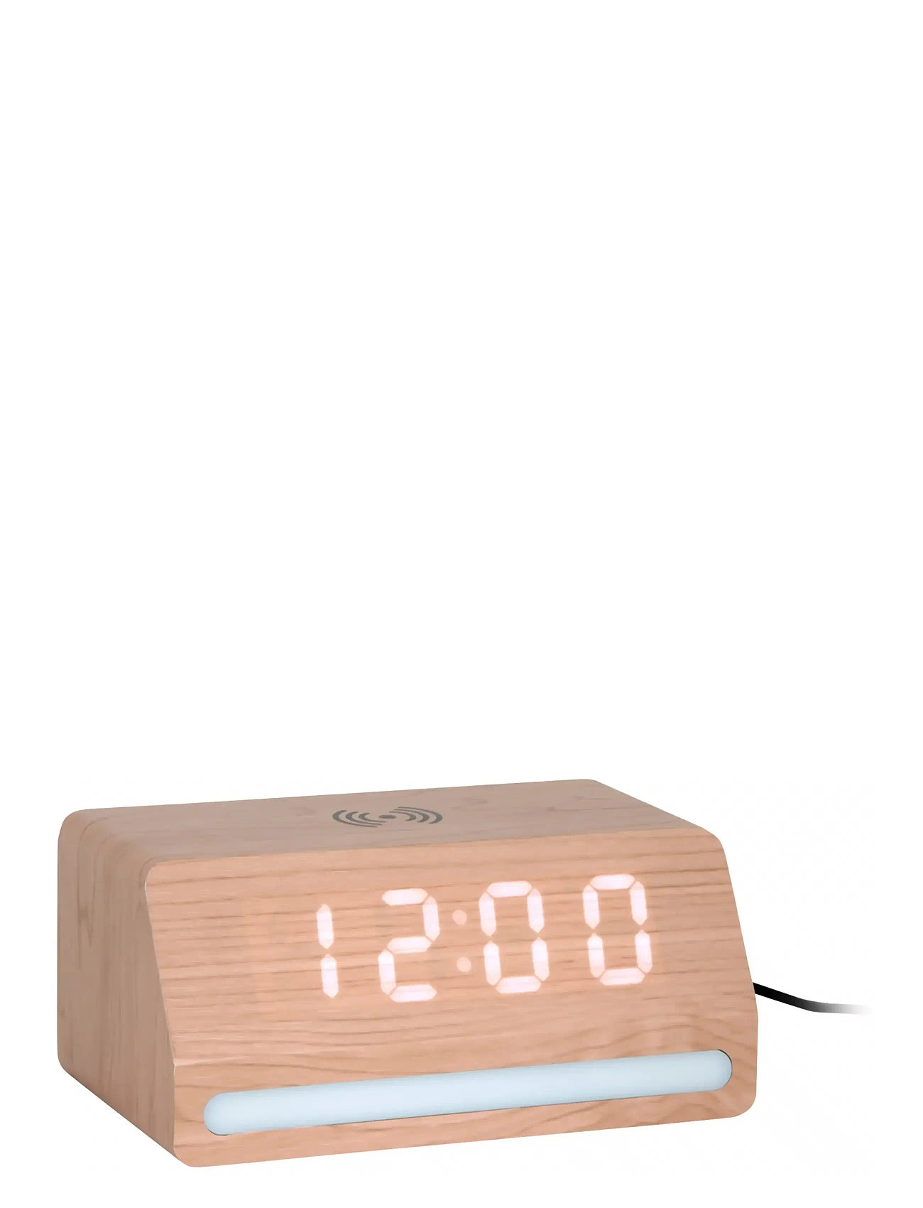 KARLSSON Alarm Clock Block W. Phone Charger Led Light Wood Veneer, White Led - H 7.1CM