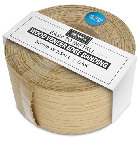 50mm White Oak Veneer Edging - 7.5m Roll - Pre-Glued Iron-On Real Wood Edging Tape for Easy DIY Application