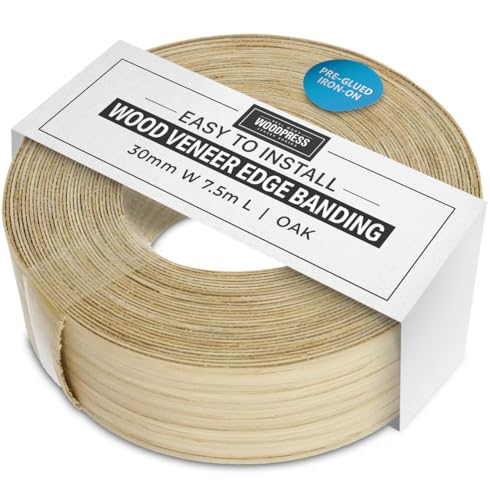 30mm Oak Veneer Edging - 7.5m Roll - Pre-Glued Iron-On Real Wood Edging Tape for Easy DIY Application