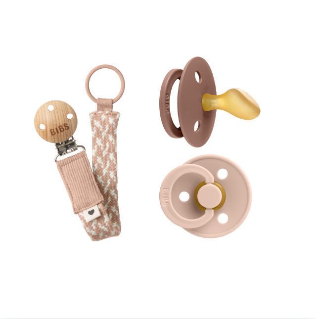 BIBS - BIBS Pacifier Colour - Blush/Woodchuck - Size 2 + Pacifier Clip Braided - Blush/Ivory - Onesize (Bundle))