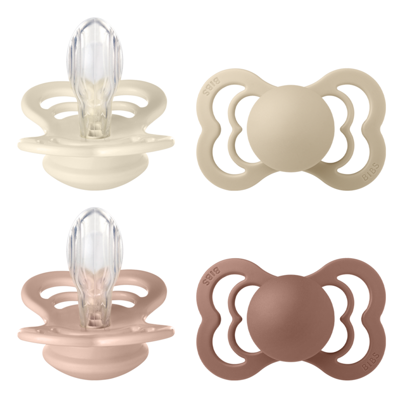 BIBS Supreme Silicone Size 2 Ivory/Vanilla/Blush/Woodchuck 4-pack
