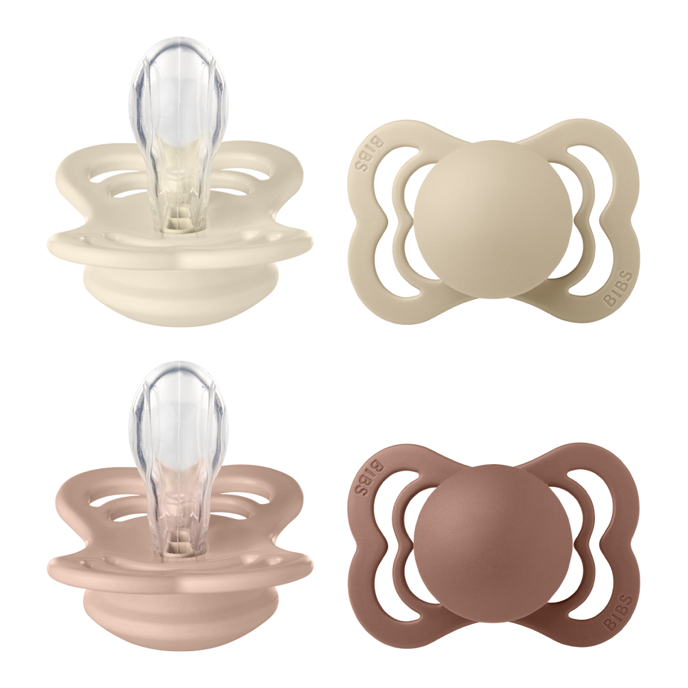 BIBS - Pacifier Supreme 4 PACK Silicone - Ivory/Vanilla/Blush/Woodchuck - Size 1