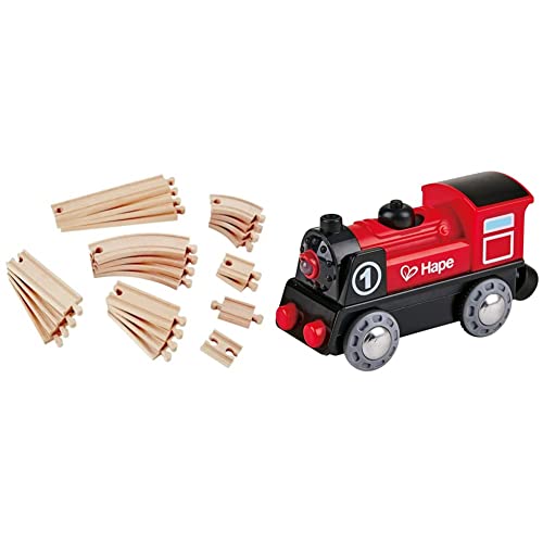 Hape E3707 Super Expansion Rail Pack - Wooden Train Track Accessories, Multicolor, 20.32 x 48.01 x 25.4 cm & Hape Battery Powered Train Engine No. 1 Red and Black for Ages 3+