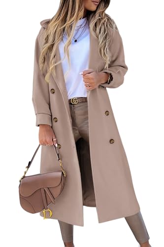 BZB Women's Long Coat Notched Lapel Collar Double Breasted Pea Coat Winter Elegant Wool Blend Over Coats Jackets